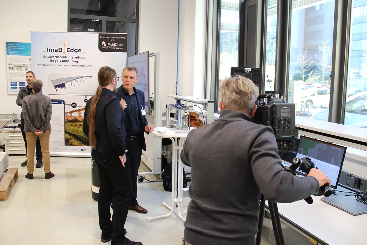 Am 30. Oktober 2025 präsentierten die Partner bei der Abschlussveranstaltung die Ergebnisse des vom Bundesministerium für Forschung, Technologie und Raumfahrt (BMFTR) geförderten Forschungsprojekts „ImaB-Edge – Intelligente, multimodale und autarke Bauwerksprüfung mittels Edge-Computing“.