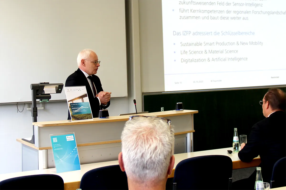 Gefolgt von der Begrüßung durch Prof. Dr.-Ing. Hans-Georg Herrmann, Mitglied des Institutsleitungskreises des Fraunhofer IZFP und des Vortrags von Jürgen Barke, Minister für Wirtschaft, Innovation, Digitales und Energie des Saarlandes stellte Chief Scientist Dirk Koster (Fraunhofer IZFP) stellvertretend für das Konsortium die Ergebnisse vor. Danach konnten sich die Gäste an Präsentationsinseln die unterschiedlichen Technologien erläutern lassen.